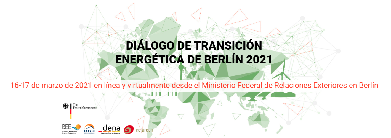 El Diálogo de Transición Energética de Berlín es organizado y apoyado por el Gobierno Federal Alemán y es una iniciativa conjunta de la Federación Alemana de Energías Renovables (BEE) , la Asociación Solar Alemana (BSW-Solar) , la Agencia Alemana de Energía (dena) y eclareon .